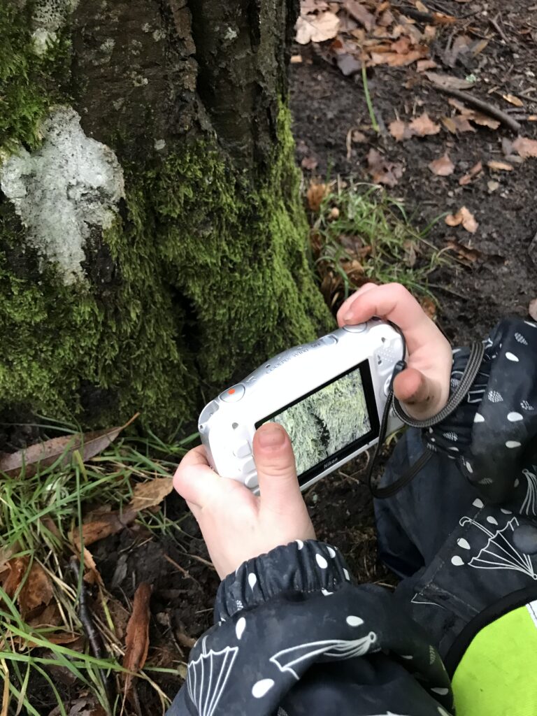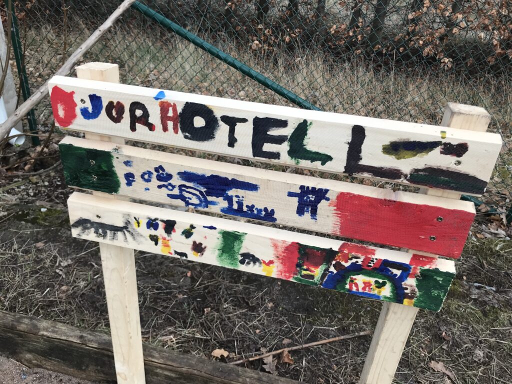 Det började som ett förutsättningslöst utforskande av kameran – och slutade med ett helt djurhotell! Någon ville fotografera, upptäckte genom kameralinsen hur många hål det finns i naturen, och så var samtalet igång: vad är det för hål, varför finns de, bor det djur där, vilka djur bor i hål, på vilka andra sätt vill djur bo…? Nu har vi läst faktaböcker, mejlat med biologer, borrat hål, mätt med både tumstock och med pinnar, sågat, skruvat, tillverkat skyltar med både bokstäver och andra symboler. Tillsammans har vi byggt ett djurhotell med olika rum och boplatser för alla möjliga sorters djur – undrar vilka som kommer att flytta in?