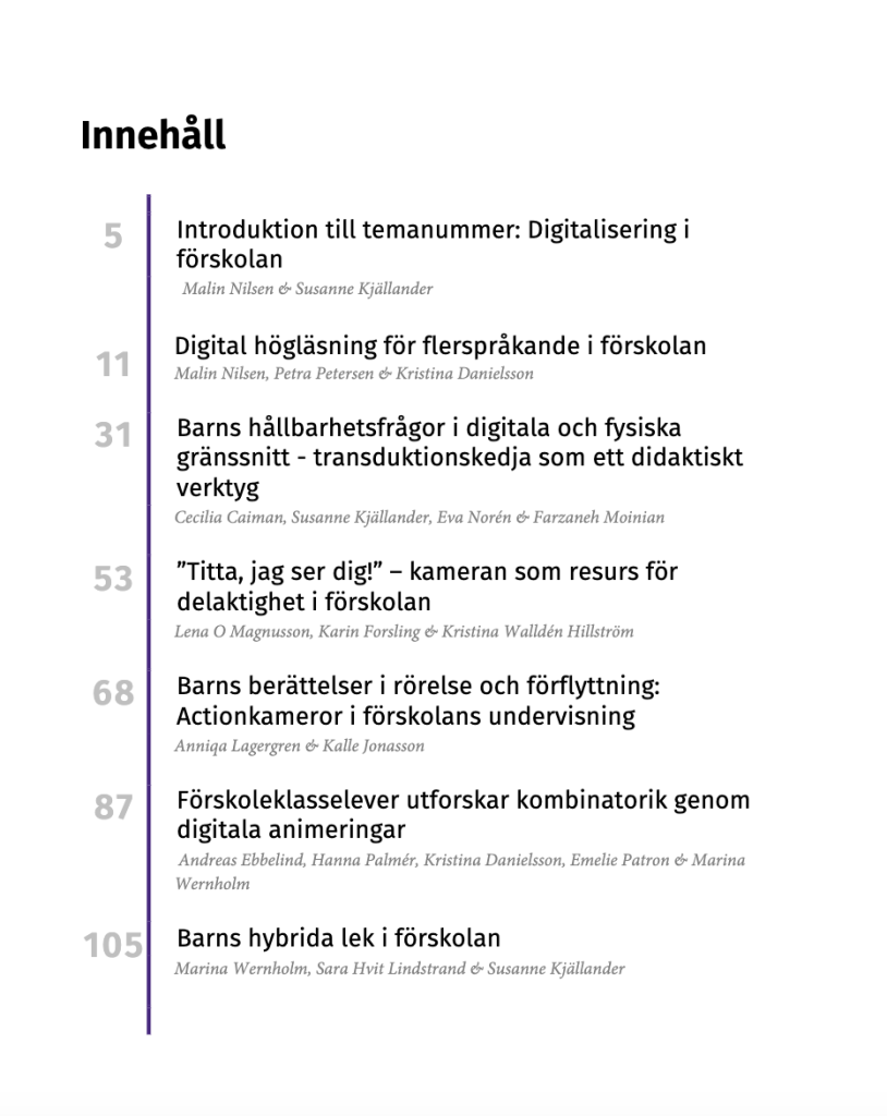 I senaste temanumret av ’Utbildning & Lärande’ presenterar 18 svenska forskare vad digitala verktyg kan vara i förskolan, ur sina olika forskningsperspektiv. Ett viktigt bidrag för att bredda, nyansera och kunskapsförankra debatten – #skärmOCHpärm som vi säger