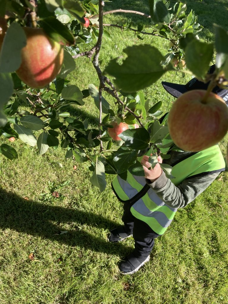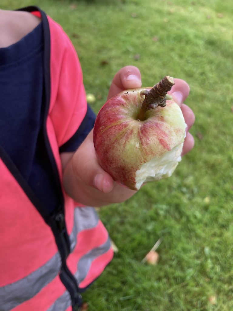 Det nya läsåret smyger igång. Vi återvänder till våra platser. Vi grejar med ditt och datt: Vi smakar på de första nästan-mogna äpplena, vi river bort famnar fulla av åkervinda från djurhotellet, vi leder vatten från en pöl till en annan… Det händer inget särskilt, och ändå händer allt. Vi förankrar oss i jorden, vi lär känna vårt hemma i naturen.
