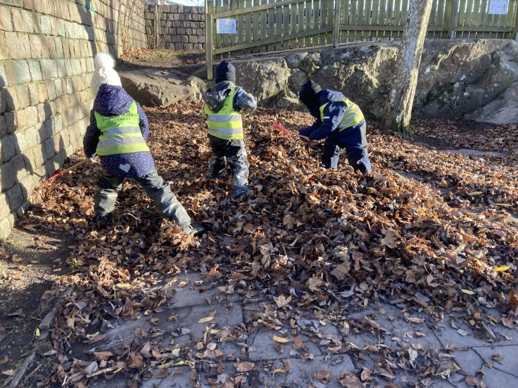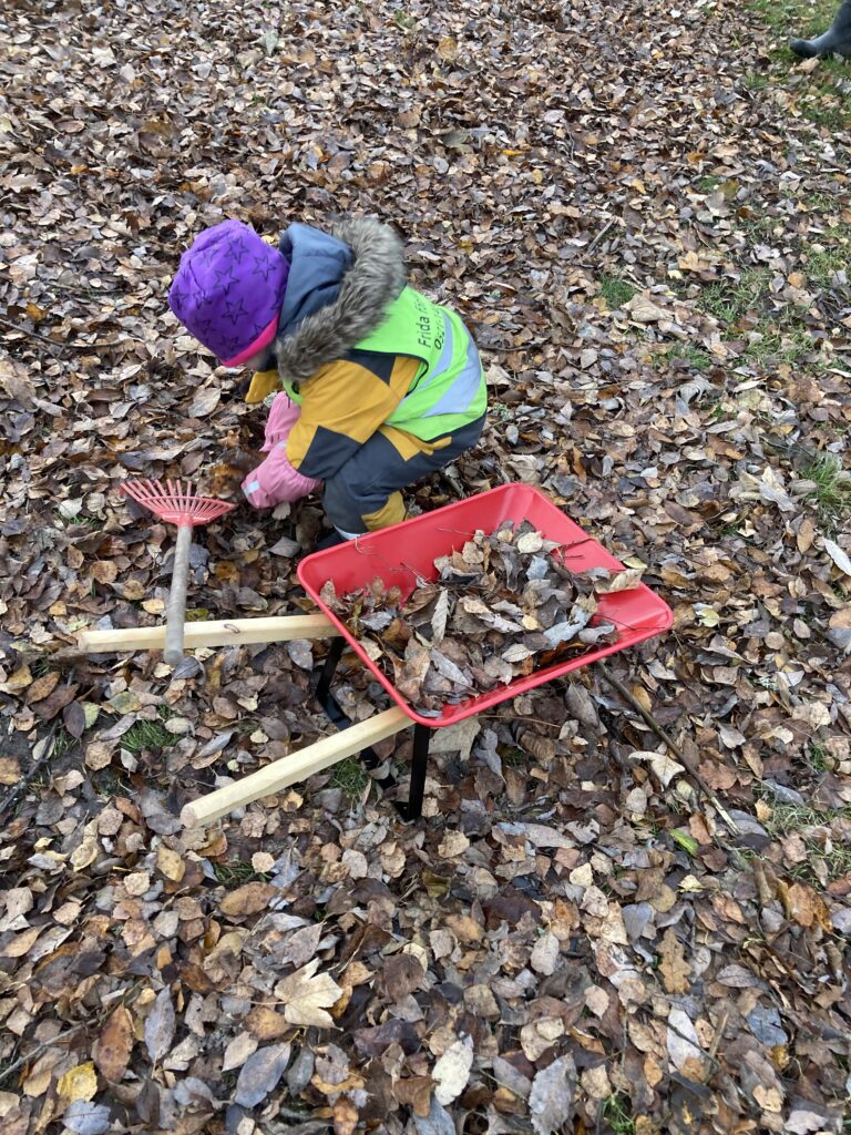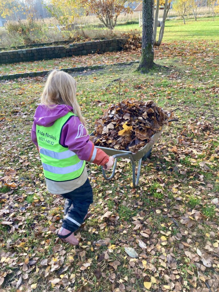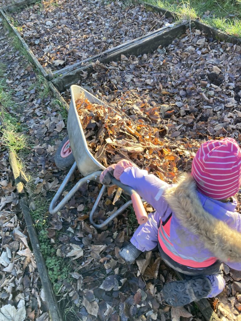 Vi pysslar om vårt Paradis inför vintern. Vi krattar ihop höstlöv i stora drivor. Vi kör skottkärra och kånkar runt. De nyplanterade hasselbuskarna får ett skyddande lövtäcke. Småkrypen i odlingsbäddarna likaså.