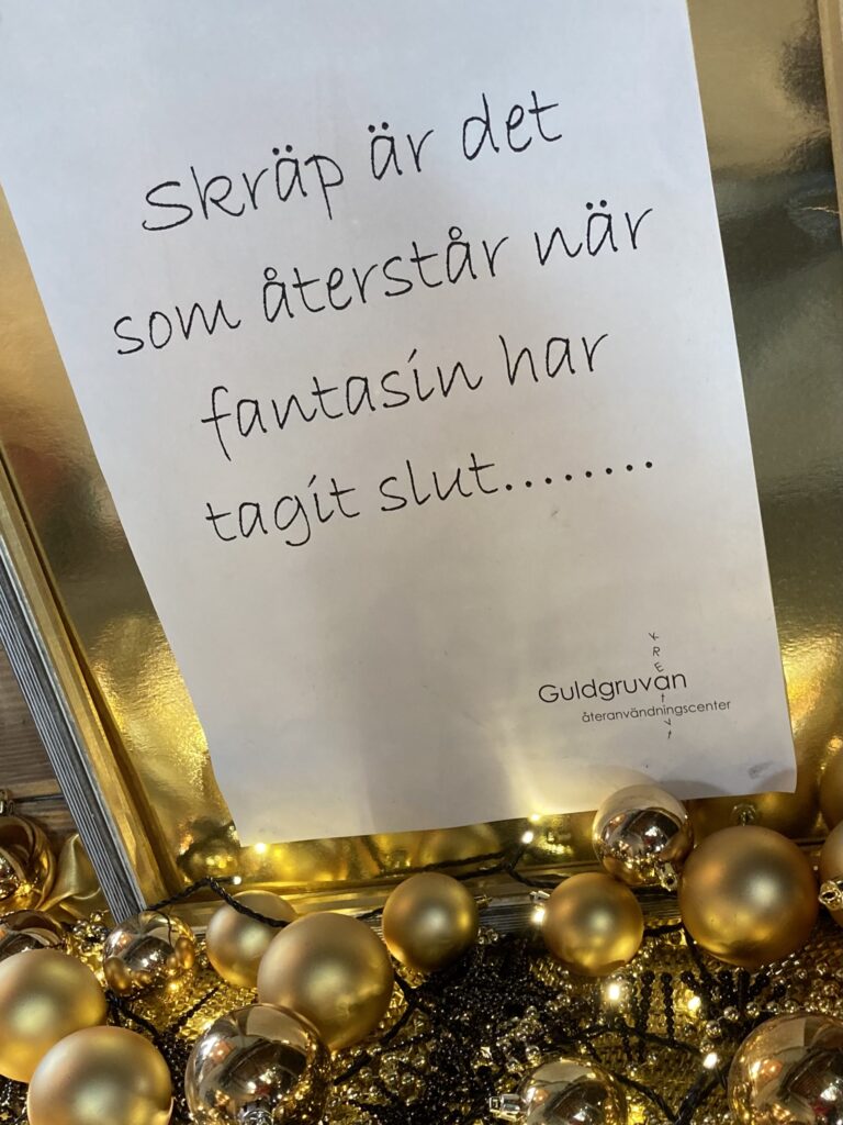 Vardagslycka för en hållbarhetspedagog! Fick rota runt lite i skräpcontainern hos lokala bygghandeln och samlade ihop en fin liten trave med prima virke som vi kommer kunna använda till något bra på förskolan… Till vad, undrar du kanske nu? Det vet jag inte än – men *något* bra kommer det att bli, det vet jag helt säkert – och det är defintivt bättre än att slänga det… Jag säger som Guldgruvan: skräp är det som återstår när fantasin har tagit slut!